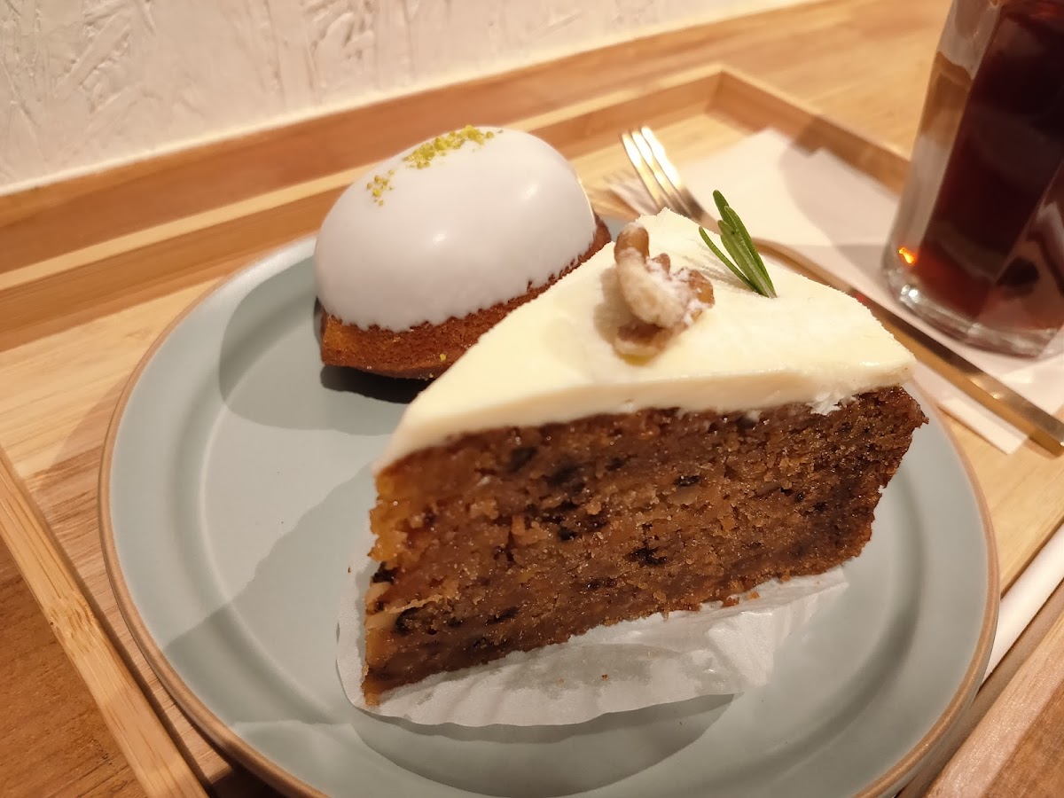 - キャロットケーキ (Carrot Cake) - Light and fluffy, this cake brings forth the essence of freshly grated carrots with a hint of nuttiness, resulting in a deliciously moist texture that's comforting with every bite.